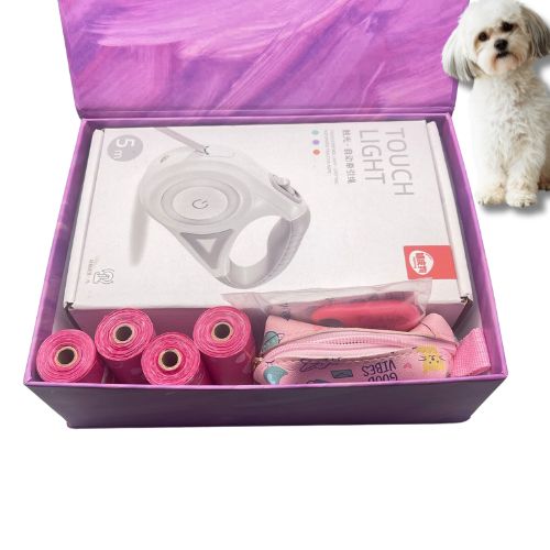 הערכה כוללת רצועה אוטומטית באורך 5 מטרים, המעניקה לכלבכם חופש תנועה מלא תוך שמירה על שליטה מלאה.